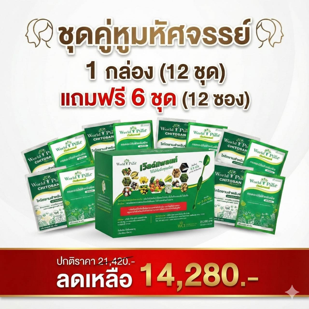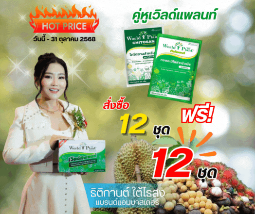 เวิลด์แพลนท์ ไคโตซาน เป็นผลิตภัณฑ์การเกษตรที่มีความเป็นอินทรีย์ออร์แกนิค 100% โดยปราศจากสารเคมี นวัตกรรมจากอิสราเอล ช่วยให้พืชเจริญเติบโตอย่างรวดเร็ว แข็งแรง และมีภูมิต้านทานที่ดี พืชสามารถทนแดดและทนแล้งได้ดีขึ้น และยังเสริมสร้างความสมบูรณ์ให้แก่ดิน ใช้ได้กับพืชทุกชนิด ทั้งพืชสวน พืชไร่ พืชล้มลุก นาข้าว ปาล์ม พริก มันสำปะหลัง อ้อย มะนาว ยางพารา ทุเรียน และไม้ยืนต้น ฯลฯ